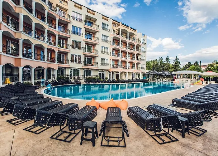 Det 4-stjärniga Avenue Deluxe Hotel Slăntjev Brjag, som ligger ungefär 10 minuter till fots från Sunny Beach nöjespark, har en pool och en vattenpark. Tack vare sitt centrala läge ligger hotellet inom 6 km från Dinevi småbåtshamn.